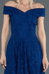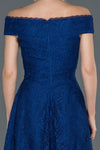 Blue, Off-Shoulder Sleeves, Strapless, Embroidered, Lace, Above Knee, A-Line Dress, Bardot Dress, Party Dresses