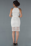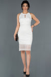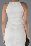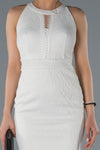 Ecru, Sleeveless, Embroidered, Self-Patterned, Lace, Knee Length, Sheath Dress, Party Dresses