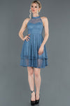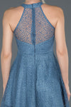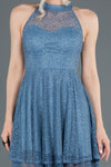 Blue, Sleeveless, Embroidered, Lace, Above Knee, A-Line Dress, Tiered Dress, Party Dresses