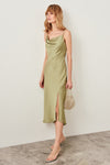 Product Detail Green, Strap Sleeves, Plain Dress, Midi Dress, Slip Dress 100% Polyester Length from Shoulder: 125 cm Sample Size: Euro 36 / SmallModel Measurements: Height: 1.78 Chest: 83 Waist:...
