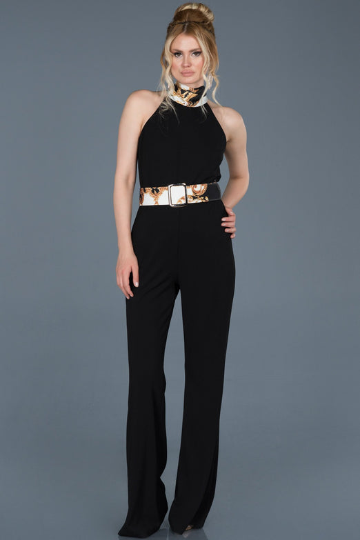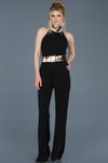 10132 Black Contrast Belt Jumpsuit
