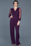 10136 Purple Glitter Tulle Sleeve Jumpsuit