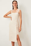 10902 Cream Eyelet Detail Slit Dress