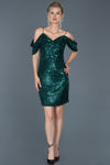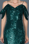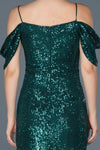 14752 Emerald Green Cold Shoulder Sequins Dress