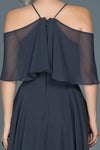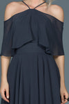 14867 Indigo Off-Shoulder Chiffon Dress