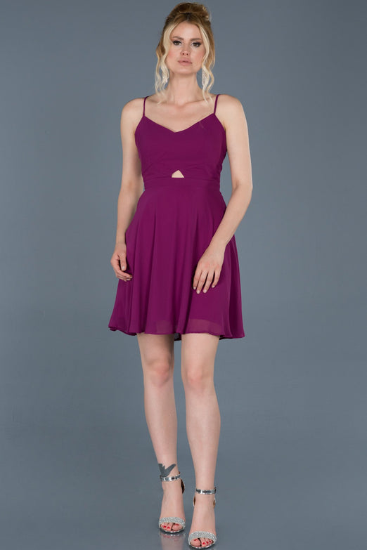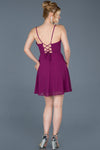 14876 Violet Back Back Straps Cutout Chiffon Dress