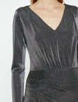 Product Detail Silver, Long Sleeves, Shimmer, Shiny, Above Knee, Sheath Dress 60% Polyamide 40% Metal