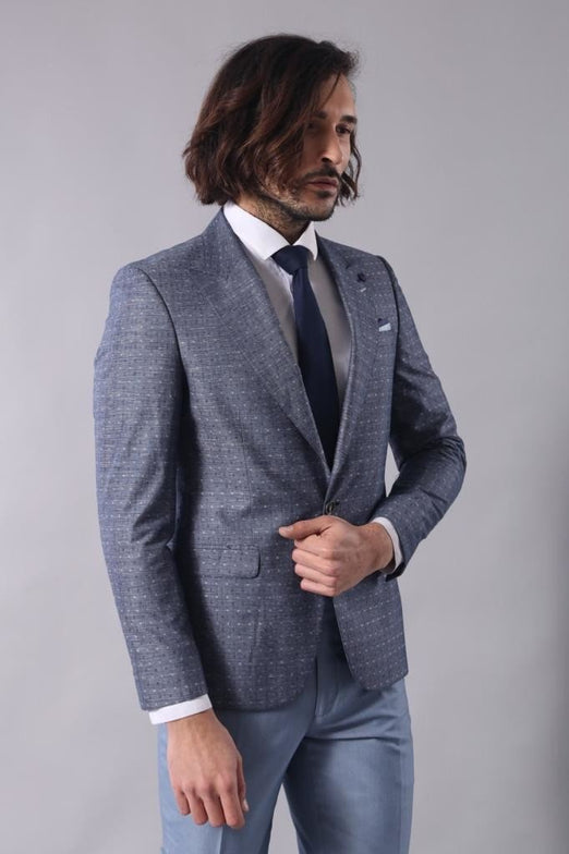 Product DetailNavy BlueSlim FitPattern: Dot patternedBlazer JacketDrop 6Details: Single button, peak lapel, linenFabric Content: 65% Polyester 35% Viscose