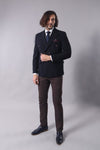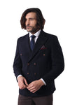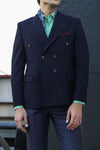 Product DetailNavy BlueSlim FitDouble Breasted Blazer Fabric Mixture: 65% polyester 35% viscoseModels Information: Height: 189 Weight: 82 Shoulder: 98 Chest: 96 Hip: 94 Models Size: Jacket: 48