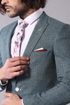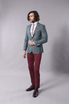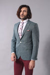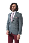 Product DetailGreenSlim FitPattern: Self-patternedJacketVent: Double ventsDrop 6Details: Single button, peak lapelFabric Content: 62% Polyester 35% Viscose 3% Elastane