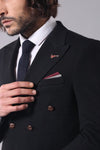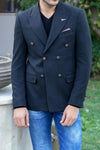 Product DetailBlackSlim FitDouble Breasted BlazerFabric Mixture: 100% CottonModels Information: Height: 189  Weight: 82  Shoulder: 98  Chest: 96  Hip: 94 Models Size: Jacket: 48