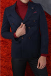 Product DetailNavySlim FitDouble Breasted BlazerFabric Mixture: 65% polyester 35% viscoseModels Information: Height: 189  Weight: 82  Shoulder: 98  Chest: 96  Hip: 94 Models Size: Jacket: 48