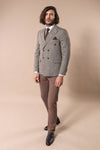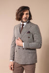 Product DetailBeigeSlim FitDouble Breasted BlazerFabric Mixture: 65% polyester 35% viscoseModels Information: Height: 189  Weight: 82  Shoulder: 98  Chest: 96  Hip: 94 Models Size: Jacket: 48