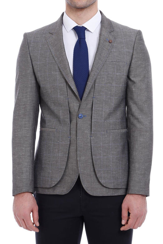 Product DetailBrownSlim FitPattern: PlainJacketVent: Double VentDrop 6Details: Two buttons, peak lapelFabric Content: 62% Polyester 35% Viscose 3% Elastane