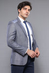 Product DetailNavy BlueSlim FitPattern: PlainJacketVent: Double VentDrop 6Details: Two buttons, peak lapelFabric Content: 62% Polyester 35% Viscose 3% Elastane