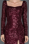 Product Detail Burgundy, Long Sleeves, Shimmer, Shiny, Sequins, Above Knee, Sheath Dress, Slit Dress, Party DressesChest Pads, LiningFor help with sizes, feel free to Whatsapp us on +27 63 128...