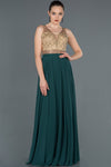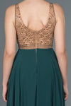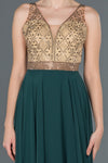16609 Duck Green-Gold Stone Embroidered Tulle Chiffon Dress