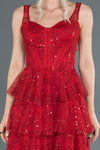 Product Detail Red, Strap Sleeves, Embroidered, Shimmer, Shiny, Sequined Tulle , Above Knee, Tiered Dress, A-Line Dress, Party DressesBreast Pads, LiningWhatsapp us for size guidance if unsure about size to...