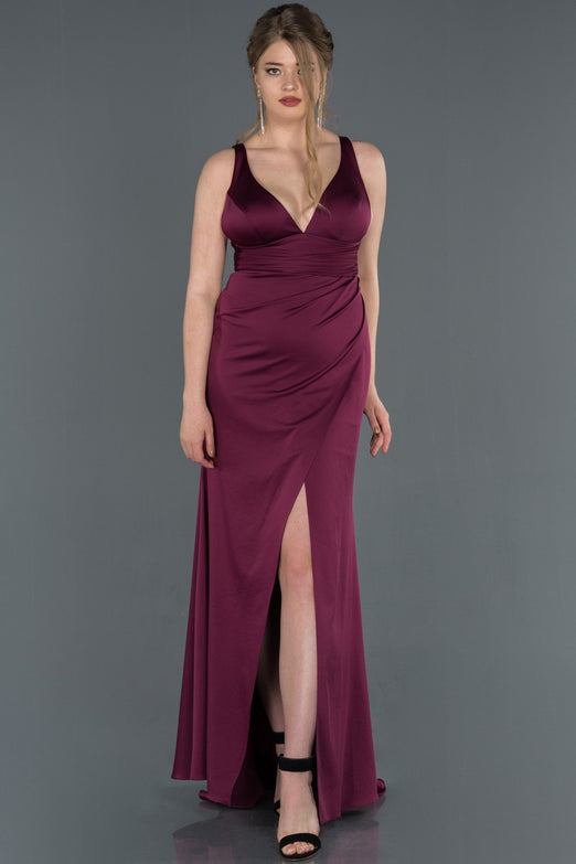 Product Detail Plum, Strap Sleeves, Shimmer, Shiny, Plain Colour, Satin, Maxi Dress, Slit Dress, Mermaid Dress, Evening DressesBreast Pads, LiningWhatsapp us for size guidance if unsure what size to choose.Model...