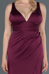 16815 Plum Draped Wrap Skirt Satin Slit Dress