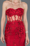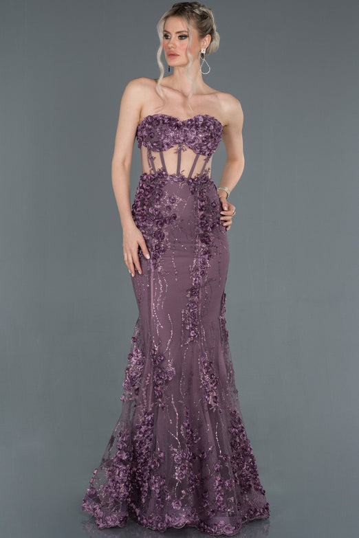 16946 Lavender Flower Applique Transparent Strapless Corset Dress