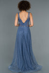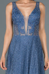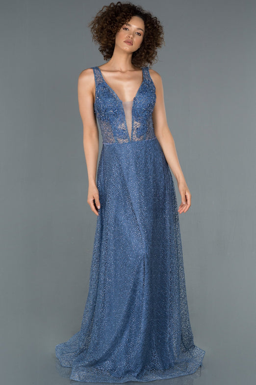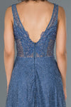 17322 Indigo Low Back Transparent Tulle Lace Dress