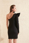 10% Elastane 90% Polyeste Plain ColourrAverage Dress Length: 88 cmModel Measurements: Height: 1.78 Bust: 82 Waist: 62 Hips: 88Sample Size: S / 36/1Style: One Sleeve Pencil Dress