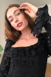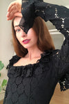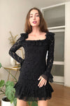 17607 Black Long Sleeve Chiffon Detail Lace Dress