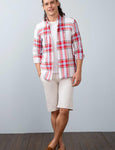 100% Cotton Red Regular Fit Men Check Shirt Buttoned Collar Height 188 Weight 77 Chest 98 Waist 82 Hip 97 Product Size M