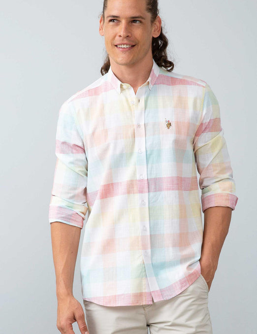 100% Cotton Pink Regular Fit Men Shirt Buttoned Collar Height 188 Weight 77 Chest 98 Waist 82 Hip 97