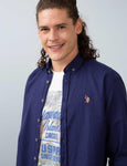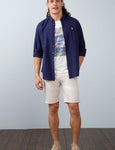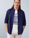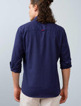 70% Cotton 30% Linen Blue Relaxed Fit Men Shirt Height 188 Weight 77 Chest 98 Waist 82 Hip 97 Product Size M
