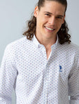 100% Cotton White Patterned Regular Fit US POLO ASSN Men Shirt Buttoned Collar