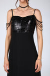 4865 Black Embroidered Sequins Chiffon Skirt Dress