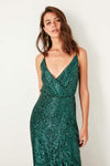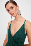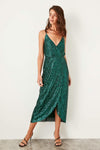 8394 Green Sequined Wrap Dress