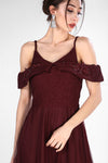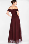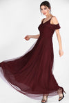 8656 Burgundy Cold Shoulder Tulle Dress