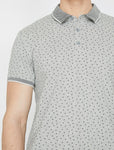 Product Detail Short SleevePolo NeckPatterned100% Cotton Model Measurements: Height: 188 cmBreast: 98Waist: 75Hip: 95Model Size: M Grey