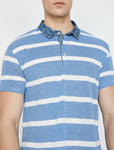 Product Detail Short SleevePolo NeckStriped Model Measurements: Height: 188 cmBreast: 98Waist: 75Hip: 95Model Size: M Blue