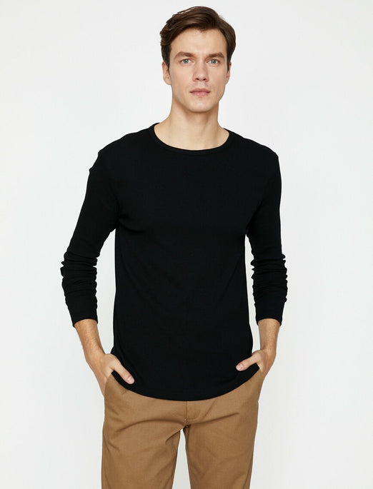 Product Detail Long SleeveCrew Neck70% Polyester| 30% Cotton Model Measurements: Height: 189 cmBreast: 99Waist: 75Hip: 99Model Size: M Black
