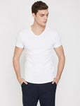 Product Detail Short SleeveV Neck100% Cotton Model Measurements: Height: 188 cmBreast: 98Waist: 75Hip: 95Model Size: M White