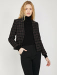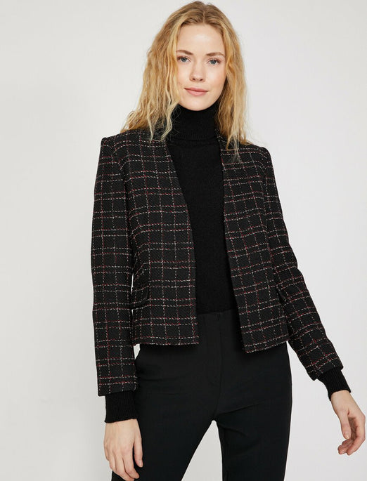 Black, Long Sleeves, Check, Formal Jacket
