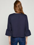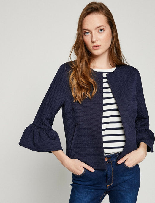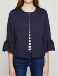 Navy Blue , 3/4 Sleeves, Patterned, Semi-formal Jacket