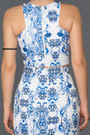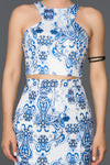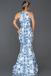14467 Ecru-Blue Patterned Two Piece Evening Dress