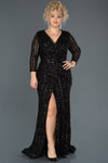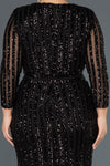 Black, Long Sleeves, Shimmer, Shiny, Sequins, Maxi Dress, Slit Dress, Wrap Dress