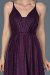 Plum, Strap Sleeves, Shimmer, Shiny, Silvery Tulle, Maxi Dress, A-Line Dress