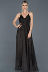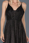 Black, Strap Sleeves, Shimmer, Shiny, Silvery Tulle, Maxi Dress, A-Line Dress