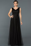 Black, Sleeveless , Plain Colour, Tulle, Maxi Dress, A-Line Dress