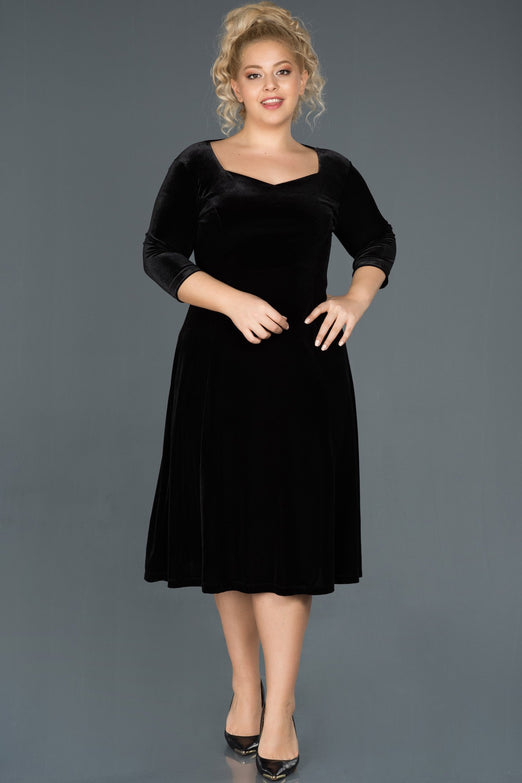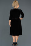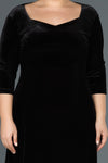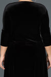 Black, 3/4 Sleeves, Plain Colour, Velvet, Midi Dress, A-Line Dress