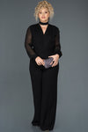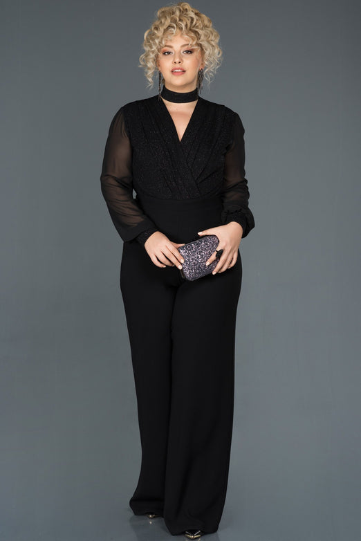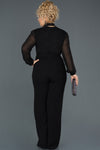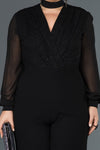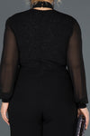 Black, Long Sleeve , Shimmer, Shiny, Crepe, Silvery Lycra & Chiffon, Maxi, Jumpsuit
