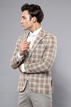 Product DetailBeigeSlim FitPattern: CheckedBlazer JacketDrop 6Details: Single button, peak lapel, double ventsFabric Content: 62% Polyester 35% Viscose 3% Elastane