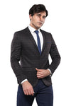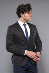 Product DetailBrownSlim FitPattern: PlaidJacketVent: Double VentDrop 6Details: Two buttons, peak lapelFabric Content: 62% Polyester 35% Viscose 3% Elastane